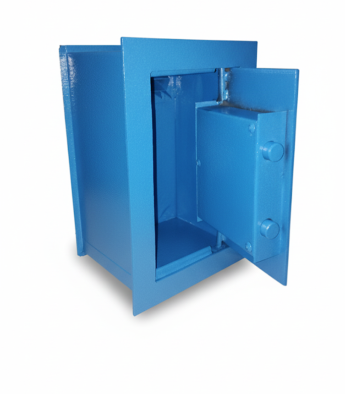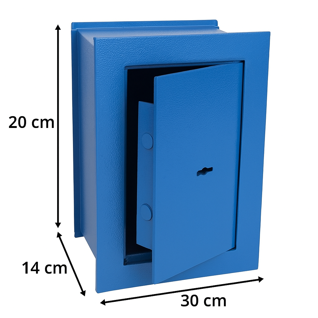 Altura: 20 cm Ancho: 30 cm profundidad: 14 cm Cerradura doble paleta 2 pernos de seguridad Marco y puerta reforzada con espesor de 5 mm para mayor seguridad Pintura Epoxi