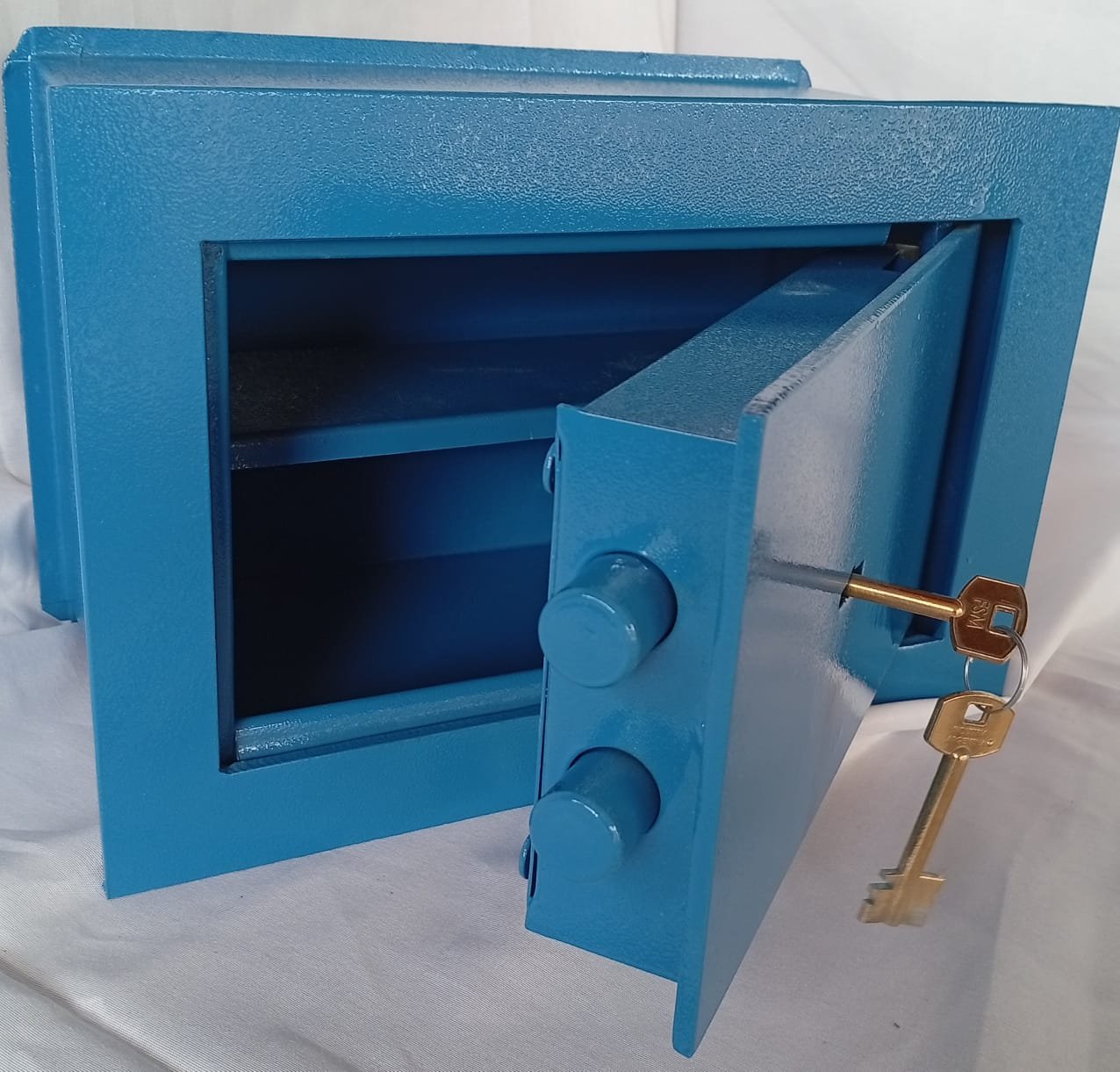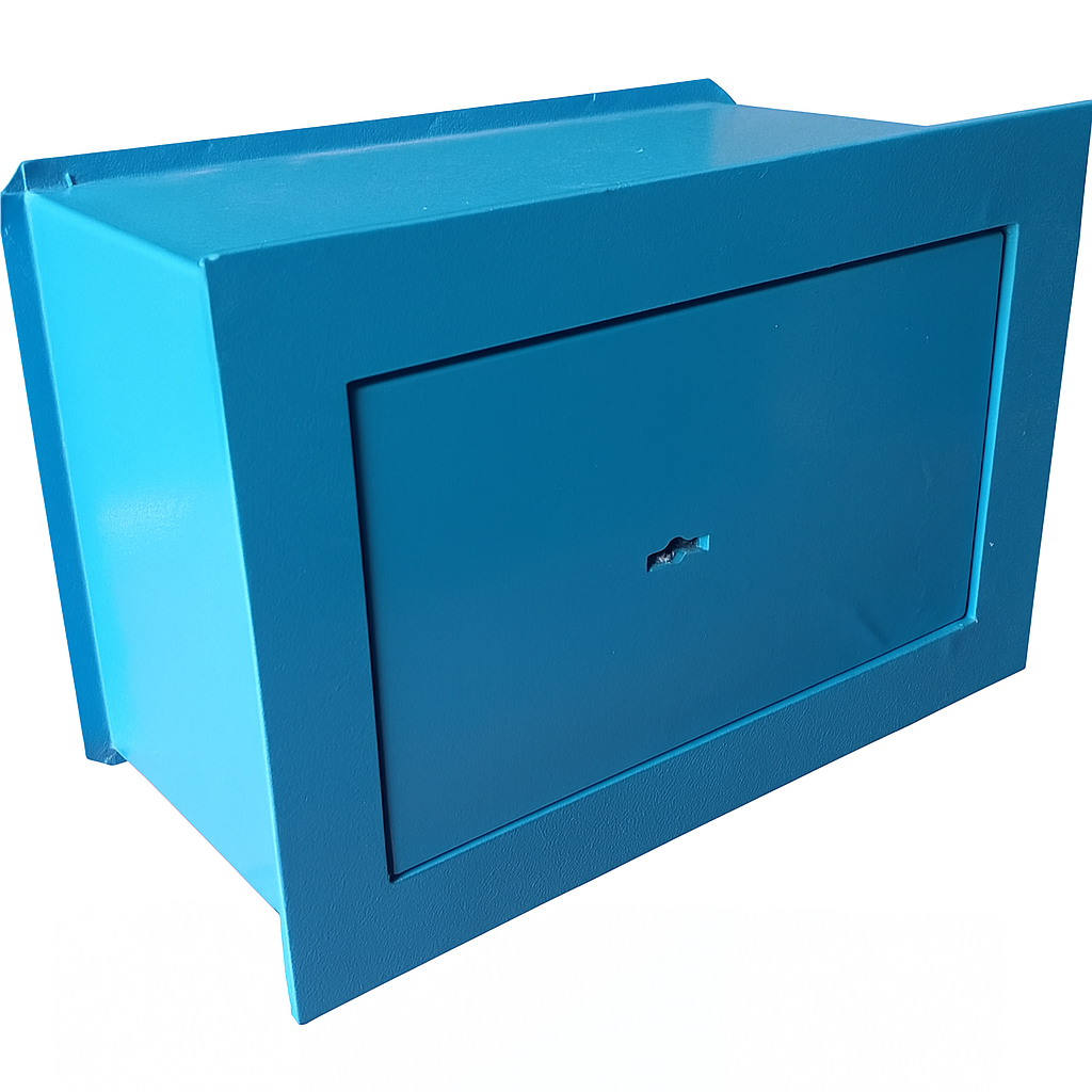 | Tesoro de seguridad Nº115 | 20 x 30 x 14 cm | Con estante interior rebatible De embutir Apertura con llave doble paleta 2 pernos de 19 mm |